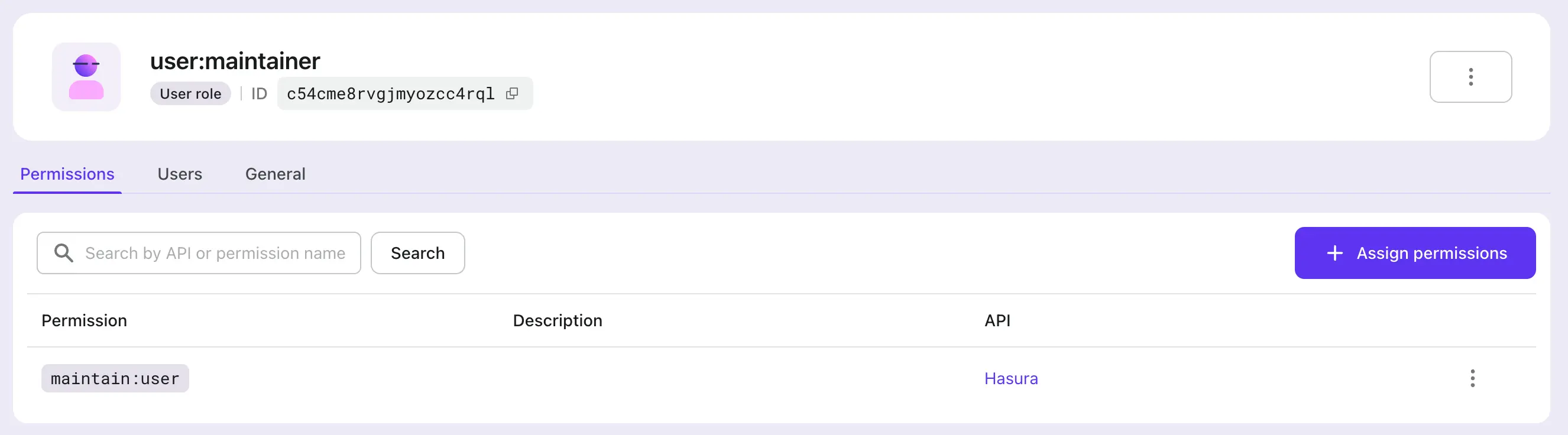 No Hasura, um papel corresponde à granularidade mais fina das permissões, e as verificações de permissão são realizadas contra papéis. Portanto, durante a configuração do Logto, recomendamos mapear um papel para exatamente um escopo. Essa abordagem pode vincular as permissões do Logto e do Hasura para evitar confusão e uso indevido.