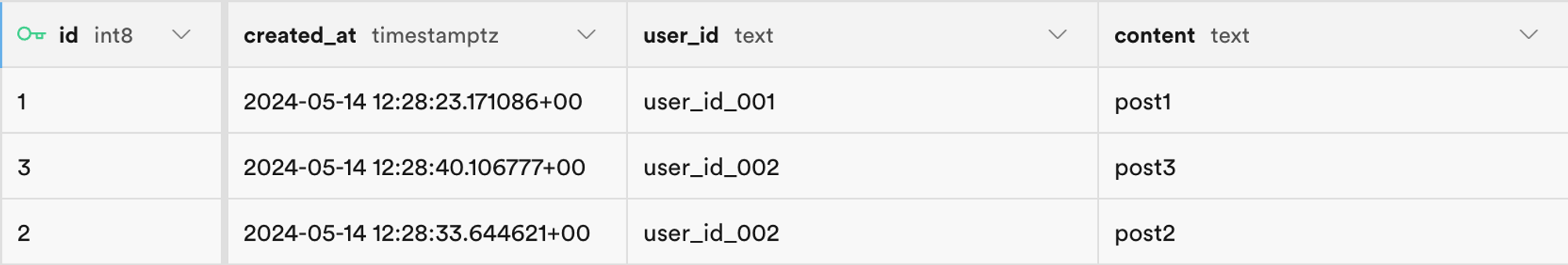 O campo user_id na tabela representa o usuário ao qual cada dado de post pertence. Você pode restringir cada usuário para acessar apenas seus próprios dados de post com base no campo user_id.