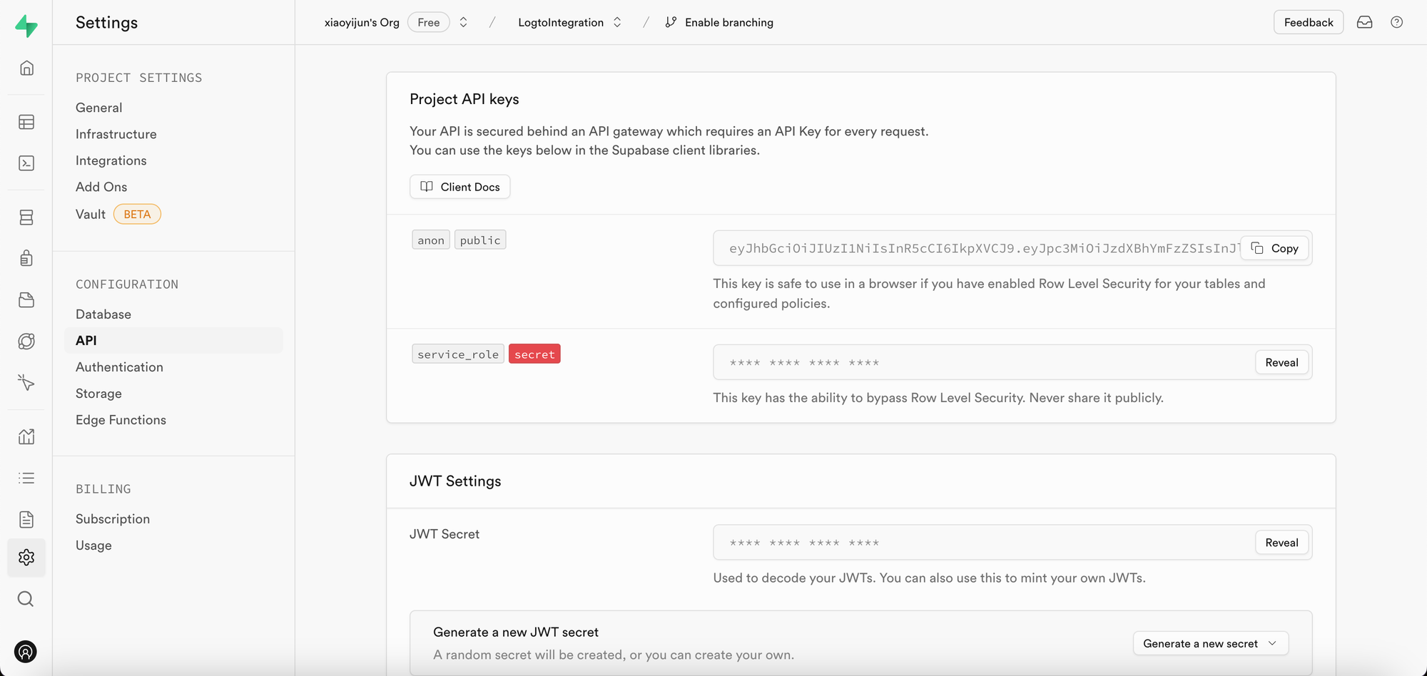 * Você pode encontrar o SUPABASE_URL, SUPABASE_ANON_KEY no mesmo local onde encontra o JWT Secret.