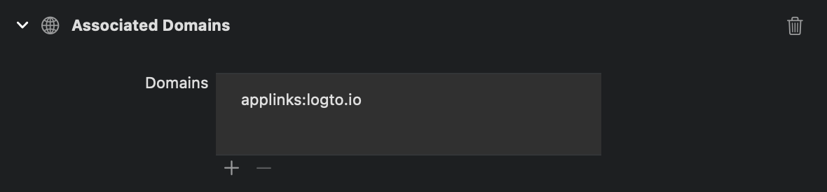 在 Xcode 项目 -> Signing & Capabilities 标签中,添加“Associated Domains”功能和你之前配置的 universal link。